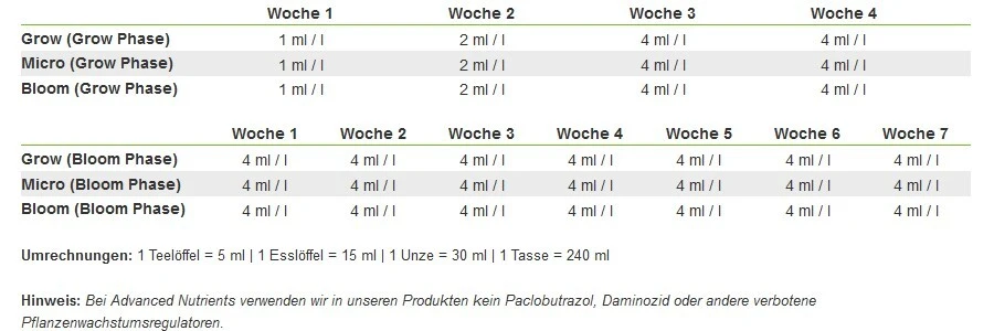 Advanced Nutrients pH Perfect Grow, Bloom, Micro sono fertilizzanti di base a 3 componenti della serie pH Perfect. In particolare, le vostre piante saranno fornite di tutti i nutrienti e additivi necessari dall’inizio alla fine. Per ottenere il pieno effetto del fertilizzante, si raccomanda di utilizzare tutti e tre i componenti della serie di nutrienti di base. I chelati contenuti nel fertilizzante creano un’elaborazione ottimale delle sostanze nutritive, che assicura risultati eccezionali.