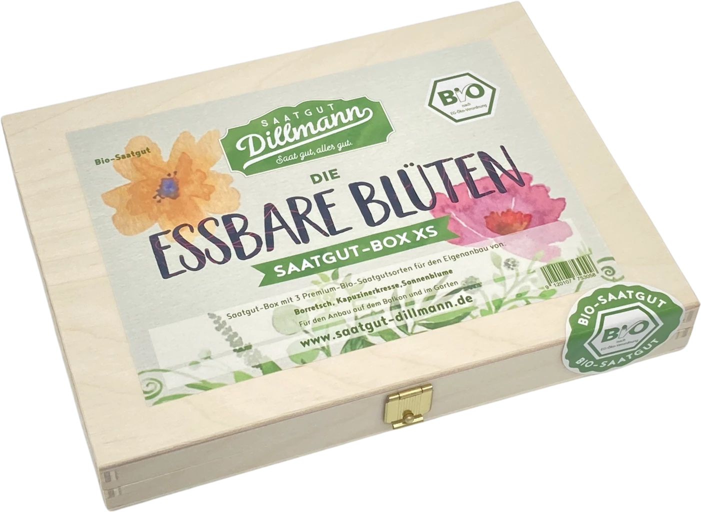 I fiori commestibili trasformano in un batter d’occhio ogni menu in una vera opera d’arte. I semi delle tre diverse tipologie di colture sono consegnati in un’elegante box di legno e accompagnati da pratici cartellini segna-piante.