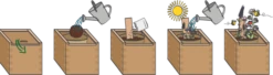 - colloca l’ecobox in un luogo luminoso e caldo, fornendole circa 40 ml di acqua ogni 3 giorni