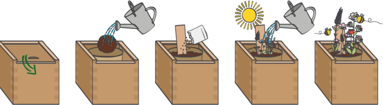 - posiziona il vaso di coltivazione nell’ecobox e aggiungi la compressa in fibra di cocco