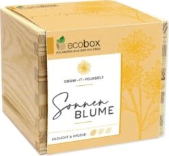 Con l’ecobox puoi facilmente coltivare i tuoi girasoli sul davanzale, poiché il set contiene già tutto il necessario per la coltivazione. L’unica cosa che occorre è un po’ di cura e attenzione. Se i tuoi girasoli diventano troppo grandi, puoi rimuoverli facilmente insieme al vaso compostabile e rinvasare in un vaso più grande.