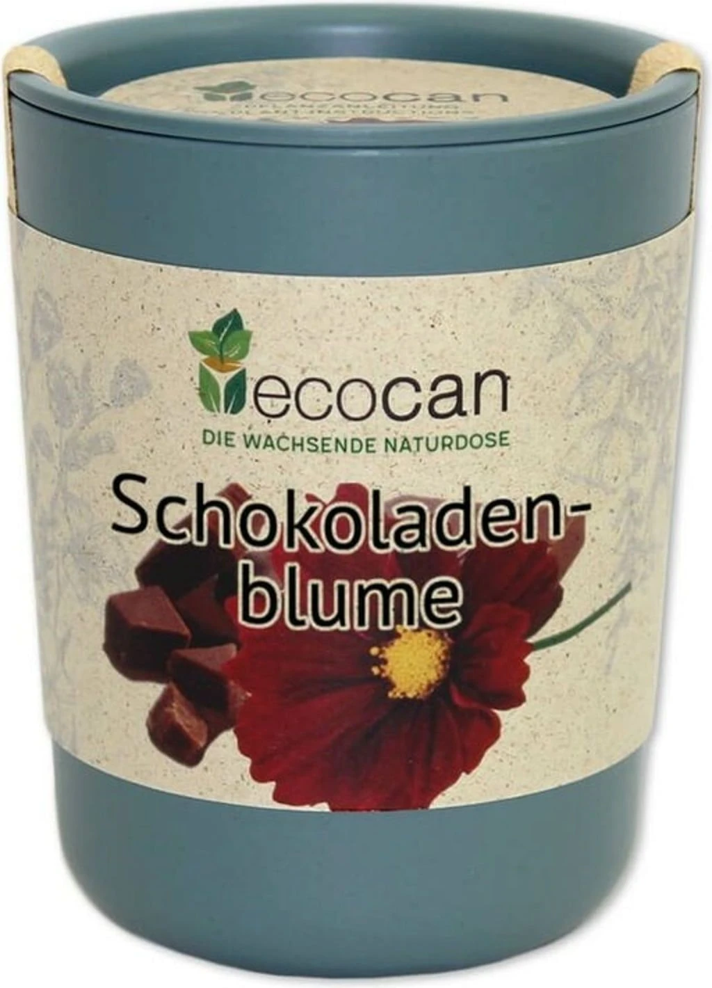 L’ecocan, in fibre di bambù e lolla di riso, contiene i semi e uno speciale granulato. Basta aprire il barattolo, usare il coperchio come sottovaso, innaffiare e dopo pochi giorni dall’ecocan germoglieranno le prime piantine. Il fiore di cioccolato è una pianta perenne, facile da coltivare e con fiori profumatissimi.