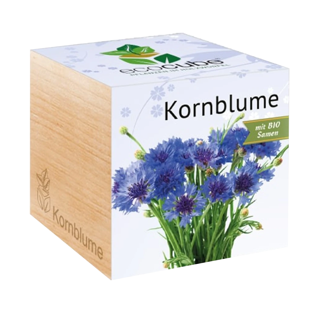Il blu intenso e brillante del fiordaliso è unico nel suo genere. Il fiordaliso è un fiore facile da coltivare e porta allegria a tuo balcone e al tuo giardino. Gli ecocube, realizzati in legno di ontano di alta qualità, vengono riempiti con uno speciale granulato e con semi biologici. Coltivare fiori e piante non è mai stato così semplice! Basta staccare l’adesivo di chiusura, aggiungere l’acqua e posizionare l’ecocube in un luogo luminoso. Dopo alcuni giorni, le prime piccole piantine faranno capolino.