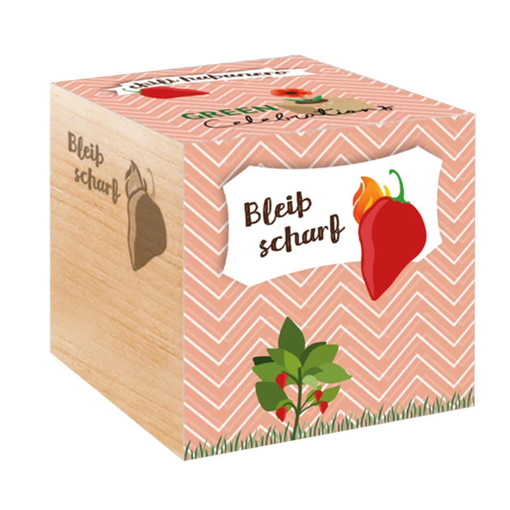 Se stai cercando un regalo elegante, ma personale, che viene dal cuore, allora sei nel posto giusto con i cubi Green Celebrations realizzati in legno di ontano. Il cubo è dotato di un’incisione di alta qualità, contiene semi di peperoncino e uno speciale granulato nutriente.