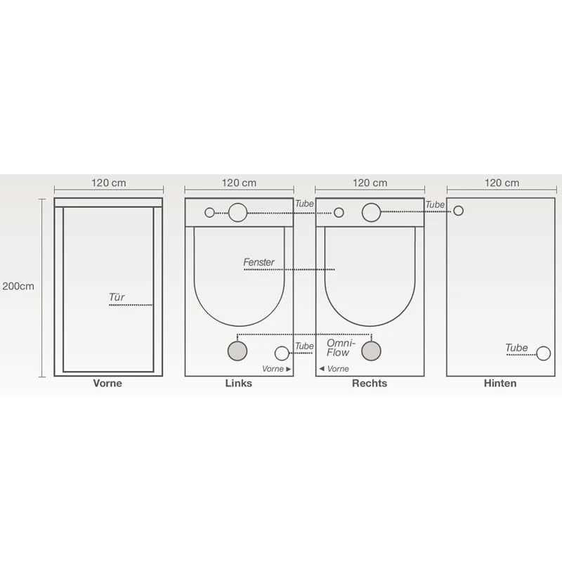 - Dimensioni della tenda montata: 120 x 120 x 200 cm