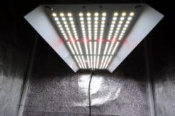 Pannello LED angolato a 45° per la coltivazione indoor. Il riflettore favorisce l’illuminazione diffusa, aumentando l’omogeneità e la resa luminosa dell’area di coltivazione. Costruzione ibrida che utilizza solo componenti di alta qualità con LED MID-Power a spettro completo e ad alte prestazioni (Seoul 3030C con 4000K) mescolati con LED OSRAM giganti ad alta potenza (rosso intenso: 660nm) per ottenere buoni risultati di fioritura. Adatto per le fasi vegetativa e generativa (ciclo completo). Elevata potenza luminosa per un budget ridotto. Luce bianca neutra per una resa cromatica reale e uno sviluppo naturale delle piante. Elevata durata, longevità e resistenza chimica ai VOC e allo zolfo.