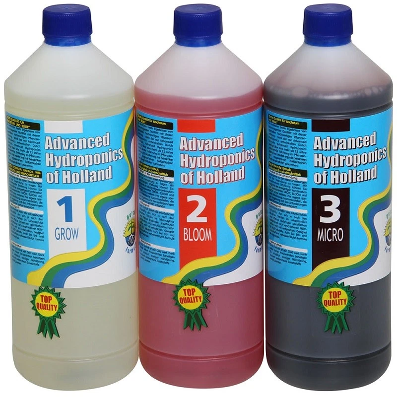 Il successo della linea di prodotti Dutch Formula della Advanced Hydroponics ha avuto inizio in Olanda, nel “cuore dell’azienda”, dove molti giardinieri coltivano piante per interni. Questi esperti sono rimasti continuamente sorpresi della qualità e soprattutto dei risultati eccellenti raggiunti grazie alla formula Dutch. Un fattore importante per questi buoni risultati è l’elevata concentrazione di nutrienti nei prodotti GROW, BLOOM e MICRO. In altre parole, avrete bisogno di meno nutrienti per le vostre piante. Per questo motivo, la formula Dutch offre una soluzione conveniente che vale veramente il suo prezzo. (cosa particolarmente importante per gli olandesi!). Questo sistema è conveniente e universale – grazie ad esso non dovrete acquistare altri integratori.