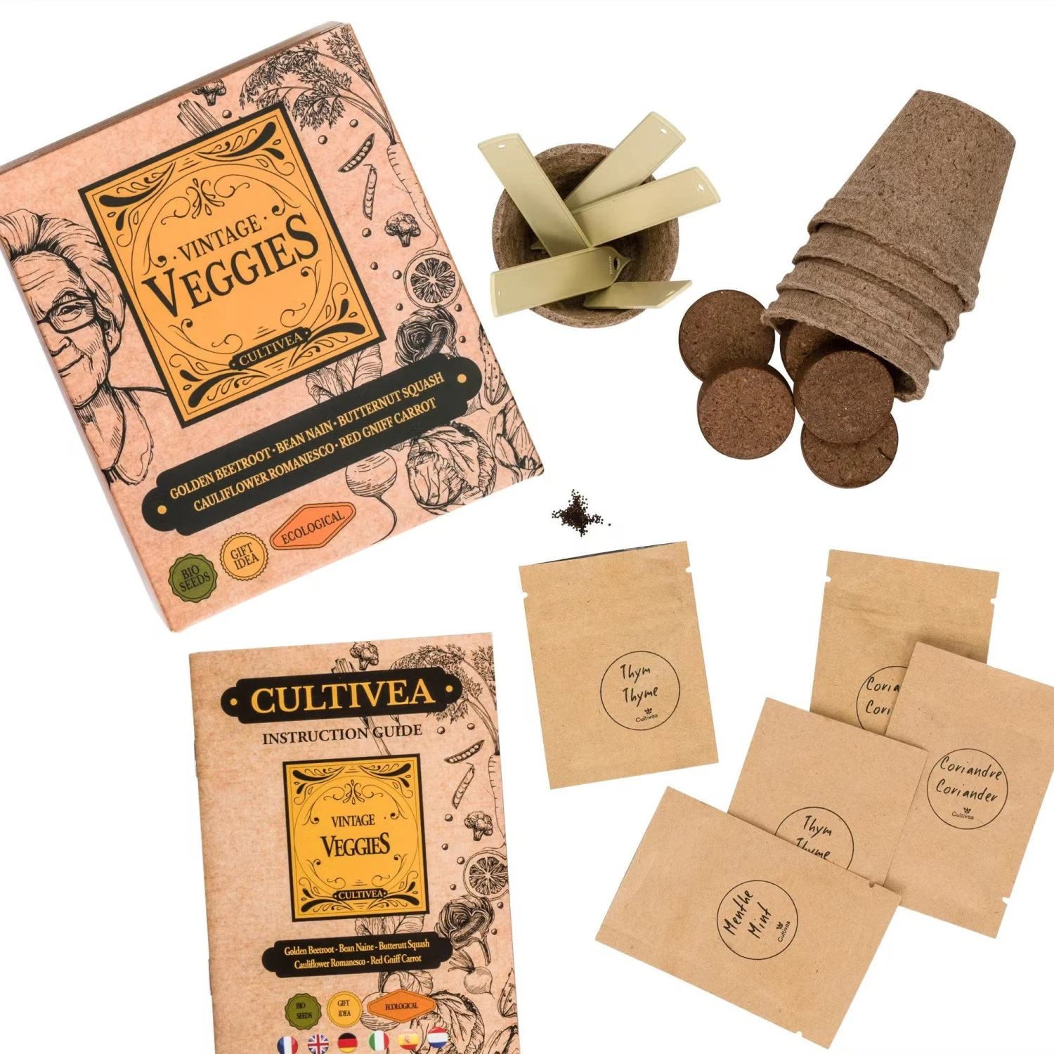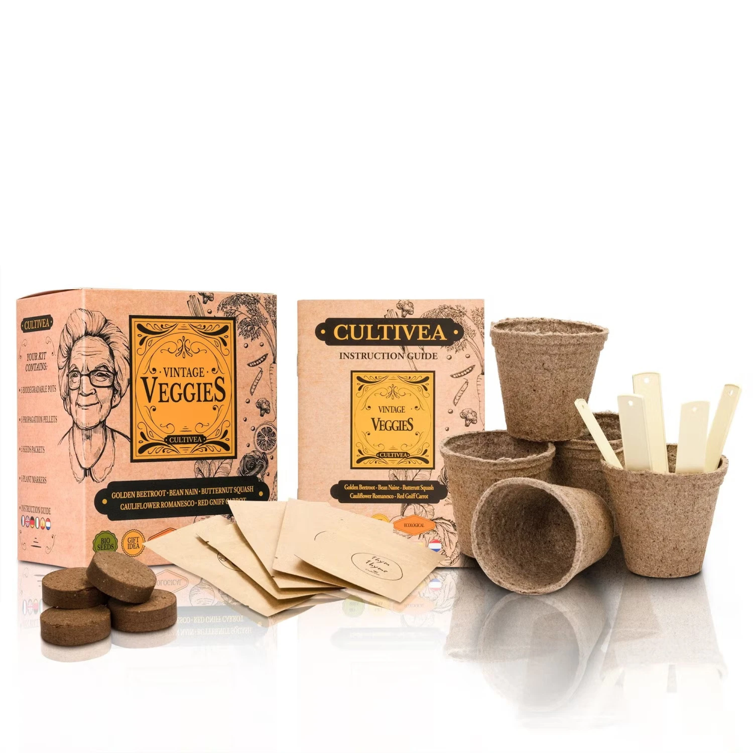 Con questo set per la coltivazione assemblato con cura, i ricordi dell’orto della nonna rivivono in te! Con semi di ortaggi antichi, vasi di coltivazione e pellet di terra bio, il set contiene tutto il necessario per iniziare.