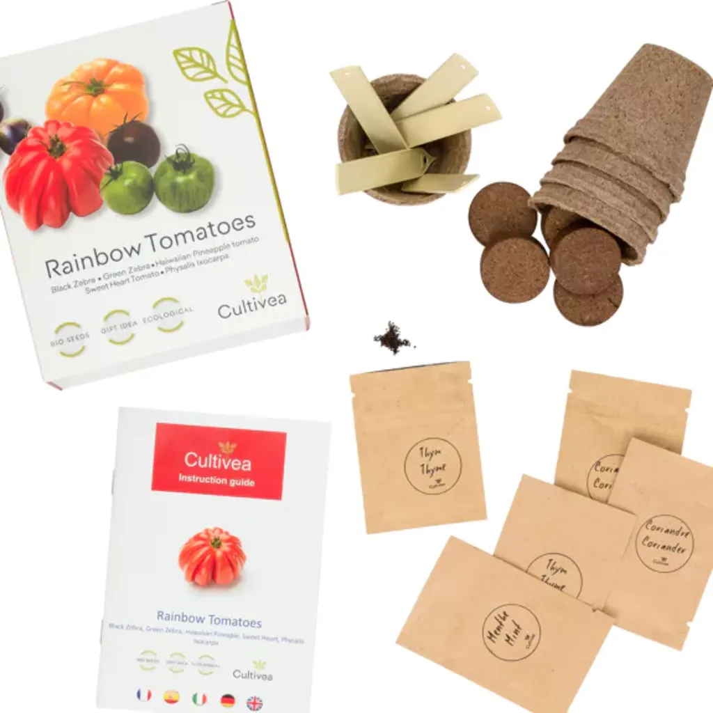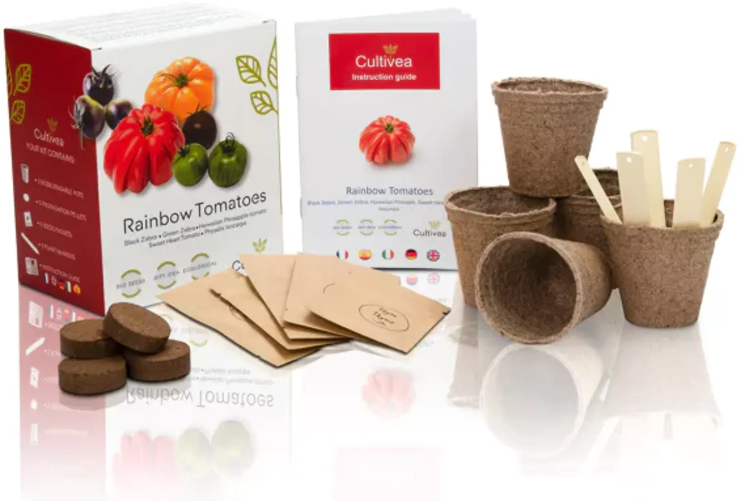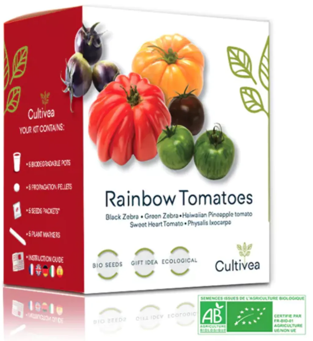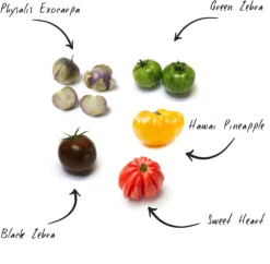 - 5 varietà di semi biologici: Black Zebra, Green Zebra, Hawaiian Pineapple, cuore di bue, Physalis ixocarpa.