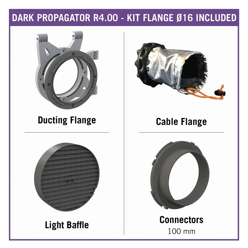 - Ducting Flange: 2x Supporto Ø160mm, 1x Connetor Ø100mm , 1x Light Baffle