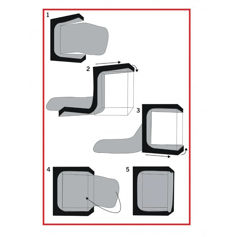 Non ci sono cinghie nelle tende Hydro Shoot Growbox. Si consiglia di acquistare opzionalmente per il montaggio della vostra ventilazione il Set di 4 cinghie di fissaggio .