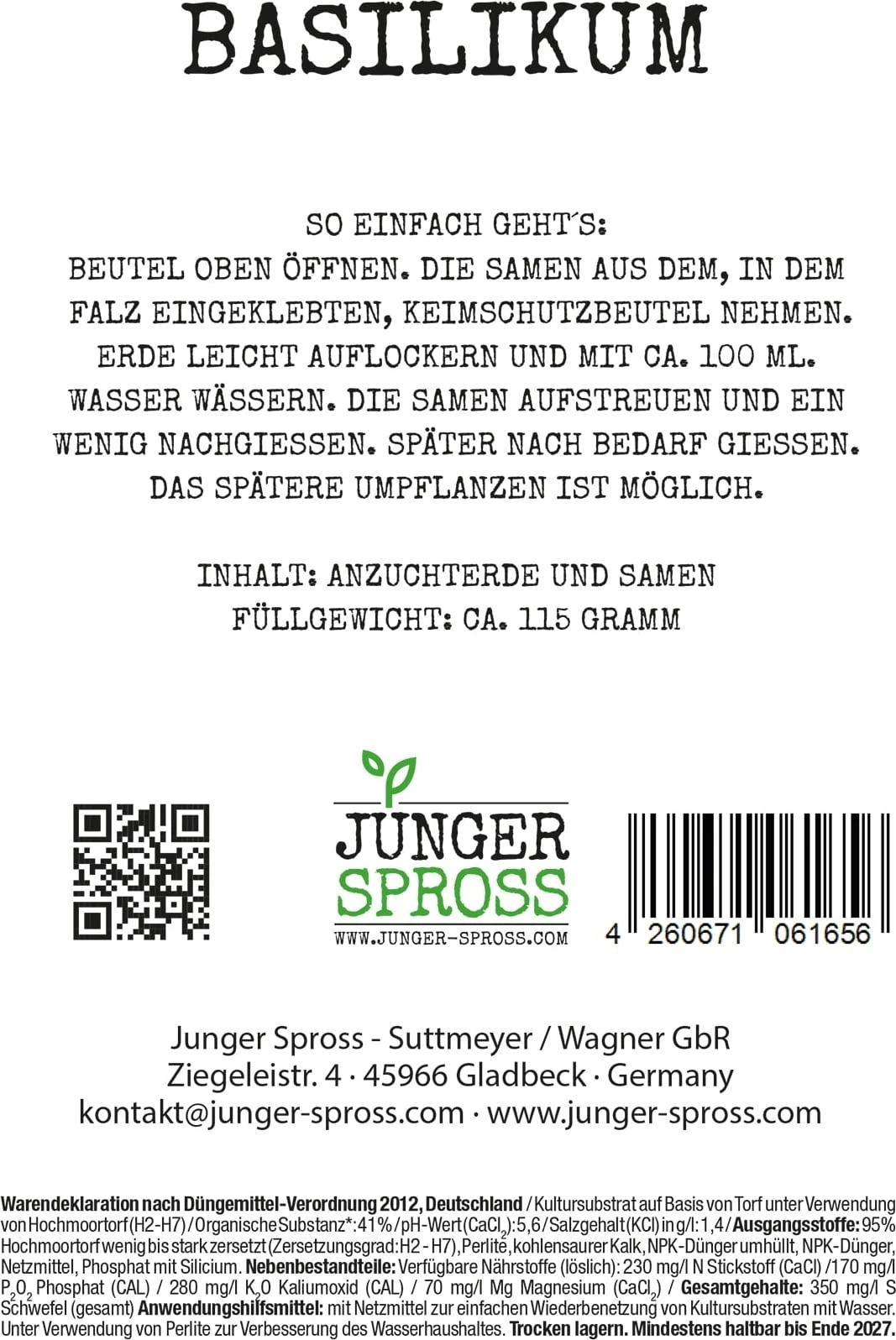 Contenuto: substrato con fibra di cocco e semi di basilico.