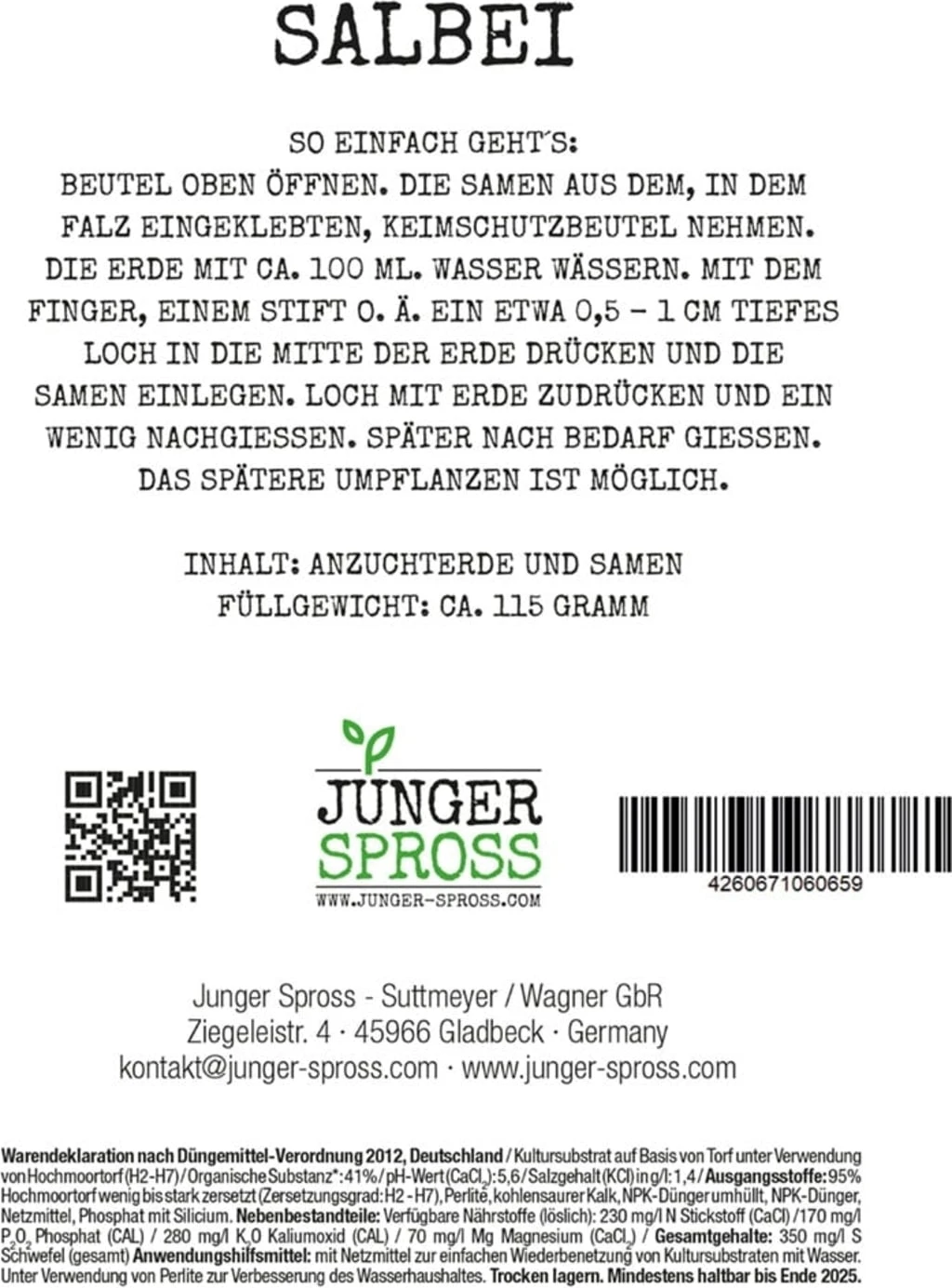 Contenuto: substrato con fibra di cocco e semi di salvia.